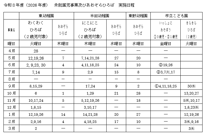 市立幼稚園・こども園では、未就園児とその保護者を対象に、未就園児事業とあおぞらひろばを開催します。在園児と一緒に一部行事に参加できます。